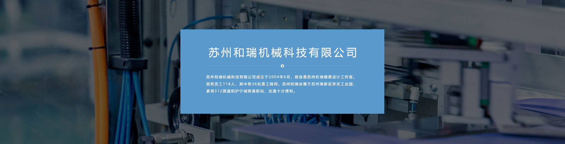蘇州和瑞機械有限公司成立于2004年6月,前身是蘇州和瑞模具設計工作室?,F有員工118人,其中有36名是工程師。蘇州和瑞坐落于蘇州高新區滸關工業園,緊鄰312國道和滬寧城鐵高新站,交通十分便利。